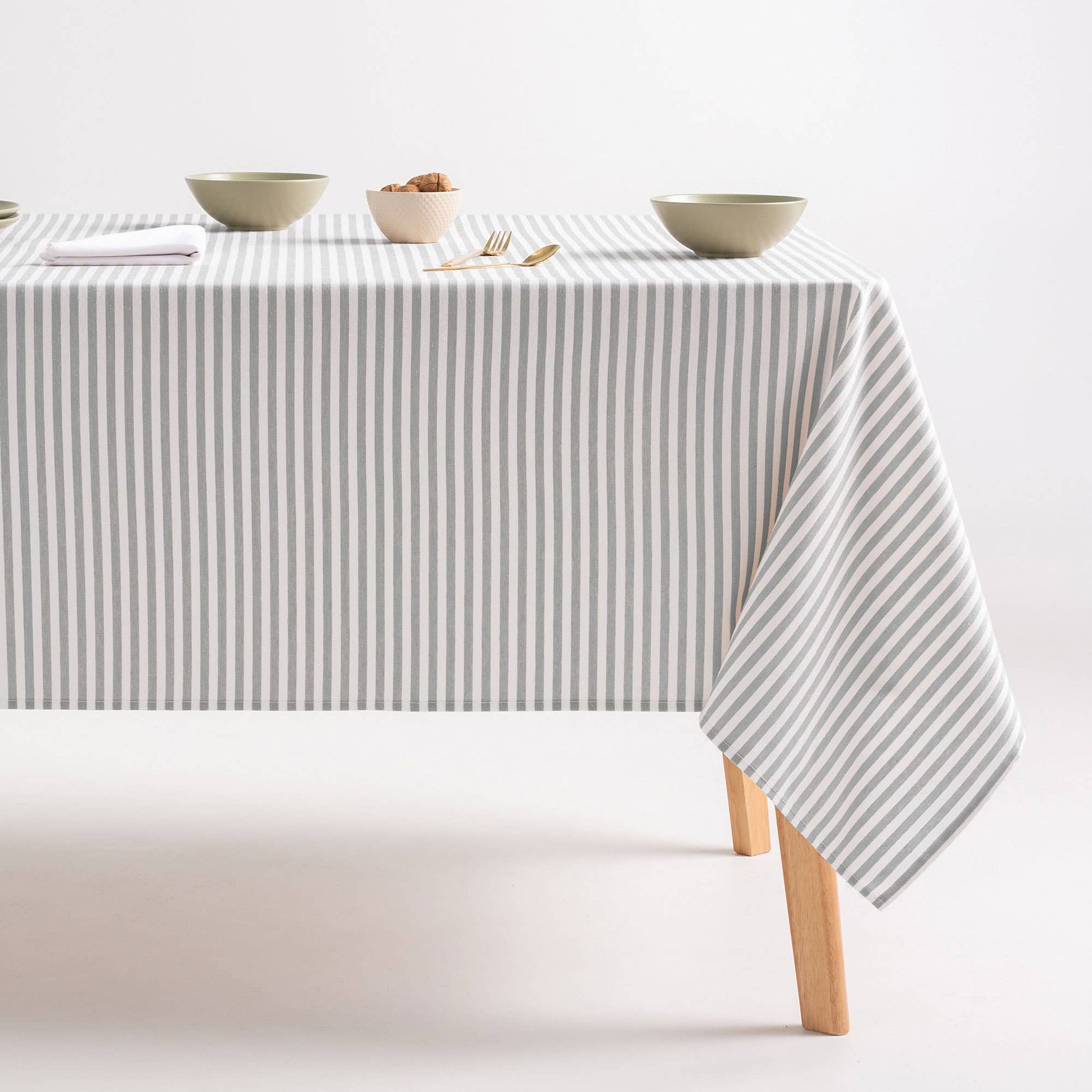 Mantel antimanchas algodón tacto tela rayas ARENZA: Gris Claro / 160x240 cm